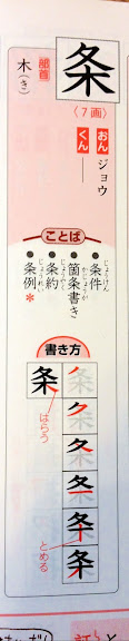 I use Skritter for practicing Japanese. For the character 条, the software advises that the vertical stroke should "hook". This is not correct. That stroke should not hook when written in Japanese. Also, the two strokes on either side of the vertical stroke should be connected with the vertical stroke, not separated. In other words, the bottom half of the character needs to be a 木.